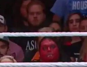 This brave Devil of a fan was sitting ringside and could even be seen doing DX chops during the Raw Tag Team Title match between Dolph Ziggler and Seth Rollins vs The Dogs Of War.