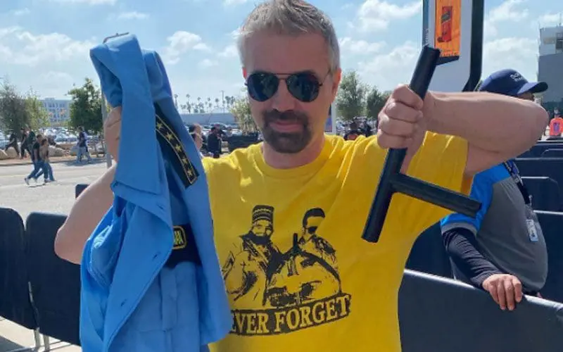 WWE’s show of shows went down over the weekend, and SoFi Stadium was packed with fans. Every fan came dressed for the occasion, and a lot of WWE merchandise was around. Some of them brought title belts to carry around like World Champion fans, but others cosplayed as their favorite Superstars. One cosplay got a certain fan in trouble.