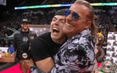 Plenty of people have Photoshopped various locations for Y2J and The Spanish God’s famous hug. Now one fan decided to get it on a custom t-shirt. When Sammy Guevara brought his attention to this fan’s epic shirt, Jericho fired off a couple of tweets.