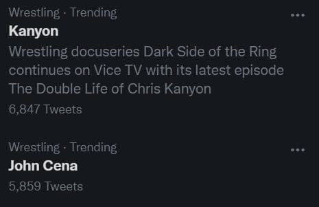 Kanyon trended on social media as fans discussed his life story. John Cena was also dragged into the conversation because he said on Howard Stern that Kanyon “wasn’t any good.” Many fans took exception to those comments from Cena as he obviously fell in line with WWE’s narrative.