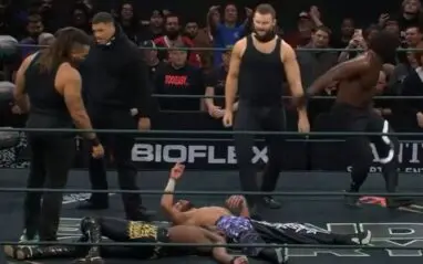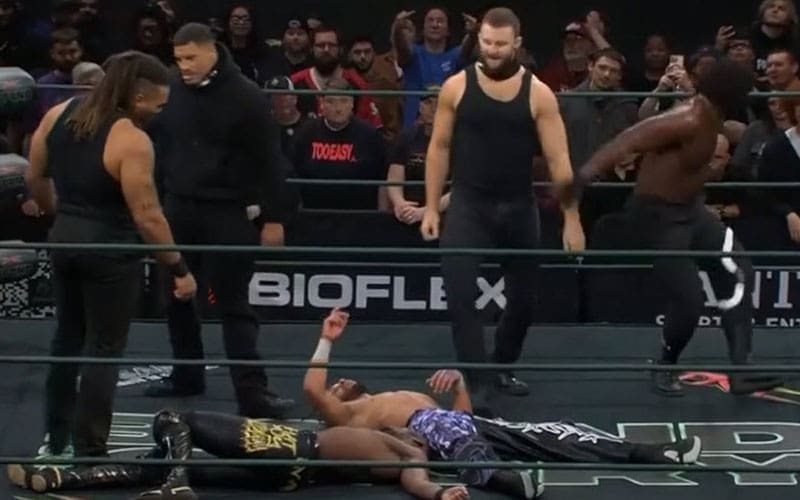 The two went at it in a big way as soon as the bell sounded to re-start the match. Suddenly, the lights went out before Evans could get the pinfall, and then DarkState made their way out to disrupt things and end the match with a massive beatdown.