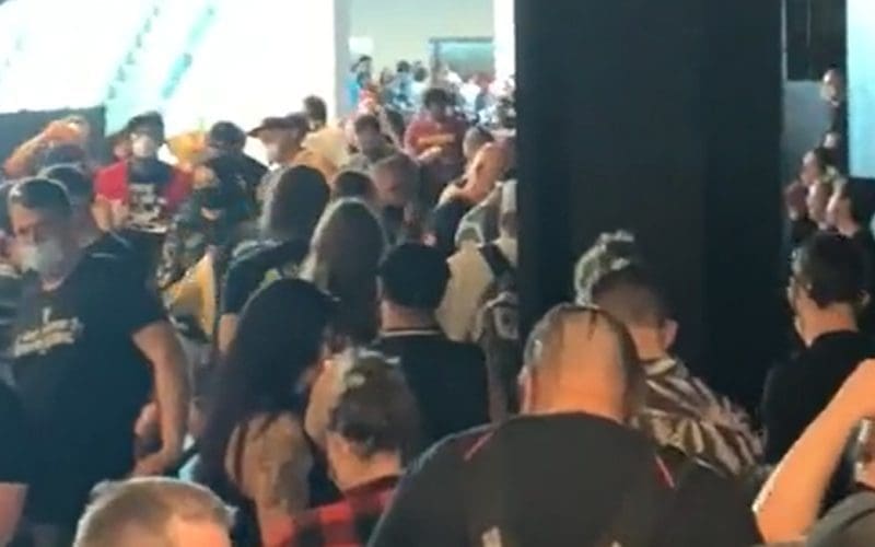 One fan wrote to Ringside News and revealed that there are chants of “We Want A Refund” before fans even boarded the ship. The line to get on the cruise ship is incredibly long and it isn’t moving due to COVID-19 protocol.
