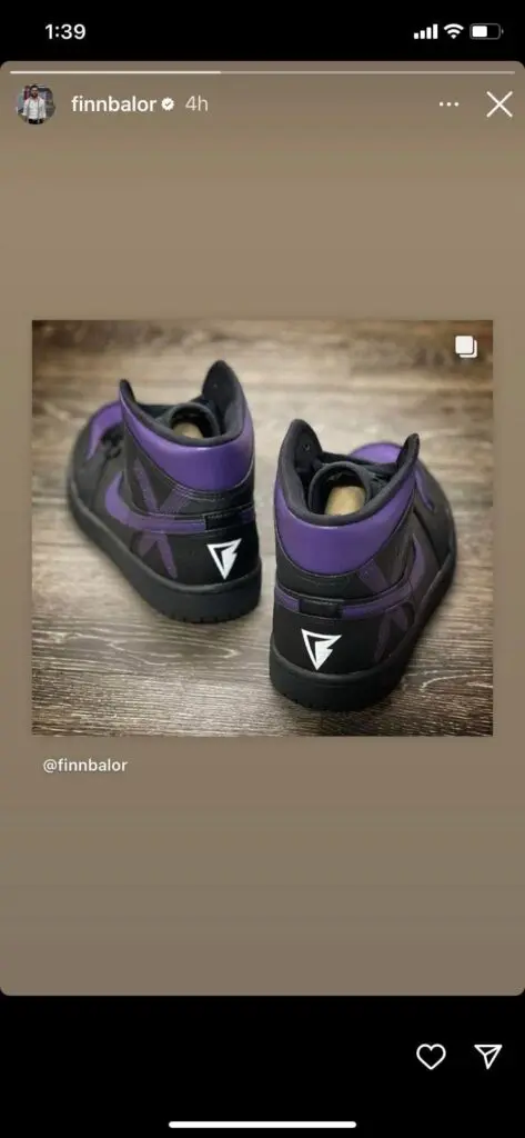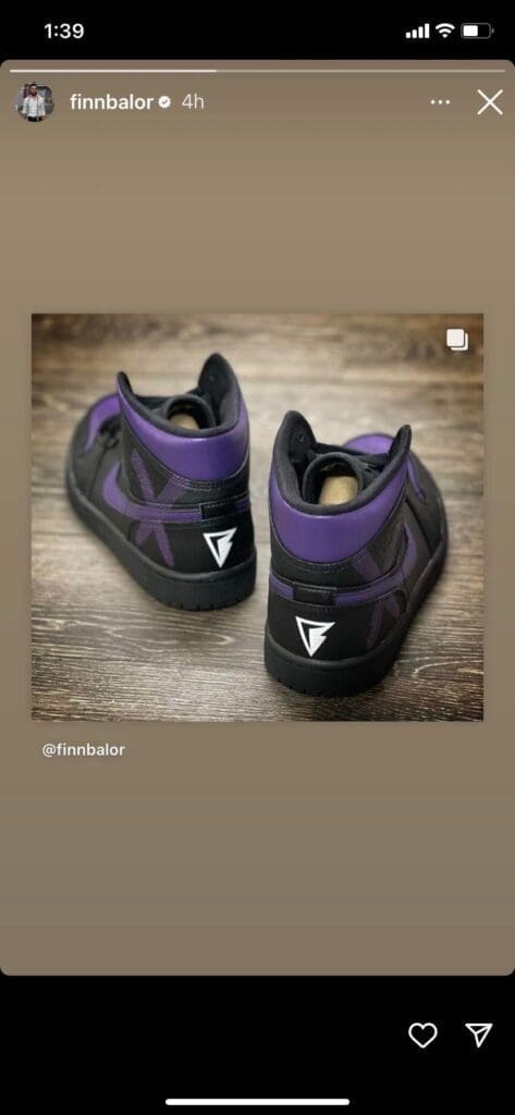 The group gives out a gothic vibe, and they are synonymous with the color purple. Therefore, Finn Balor decided to purchase a pair of Nike Jordans that match the Judgment Day’s colors. Balor took to Instagram to post a picture of his new shoes.