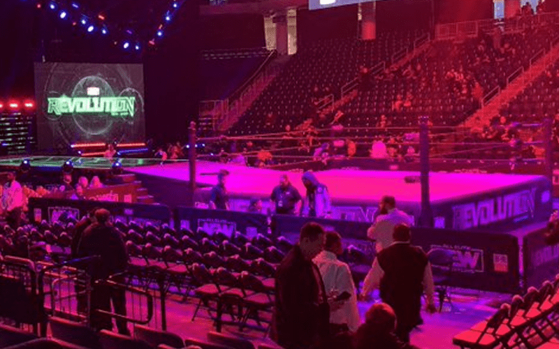 The first photo of the AEW Revolution stage has surfaced and they have a suitable stage for tonight’s event. You can check out the photo that was uploaded by Bodyslam.net’s Cassidy Haynes.
