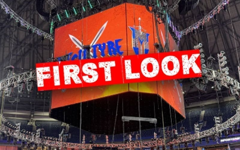 Ringside News has obtained an image of the Elimination Chamber set, which shows the construction taking place for the event. It shows the chamber being set up and them already running entrances, notably Drew McIntyre.