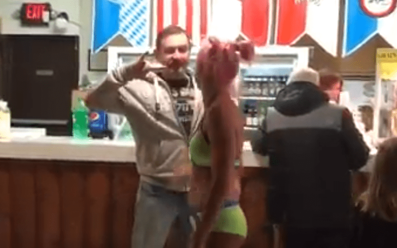 Apparently the fan was calling her a stripper and yelling for her to “take it off” all night and this didn’t go over well with Green. After her match she confronted the man at the concession stand where it looks like they had a few words before the fan flipped her off as she stormed off.