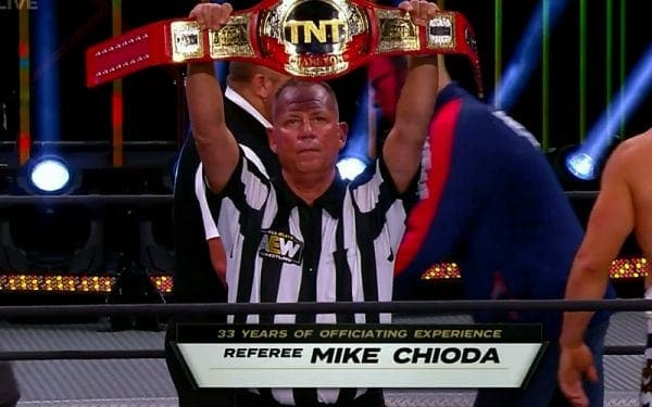 Mike Chioda made his AEW Dynamite debut this week. He officiated Cody’s TNT Title defense against Scorpio Sky. They said he has “33 years of officiating experience” on his name plate.