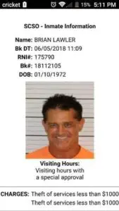 He was booked for theft of services of less than $1000 and has a hearing this morning, June 6th at 9:00 am.