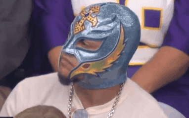Mysterio was in attendance at the Vikings game today and he was spotted in the crowd. When he was shown on camera, the announcer really didn’t seem like he understood what Mysterio is about at all.