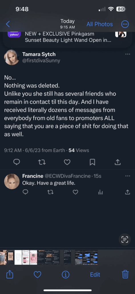 Tammy Lynn Sytch made a lot of enemies in the pro wrestling world, and some of them used to be friends. We will have to see what develops next in this ongoing Twitter war.