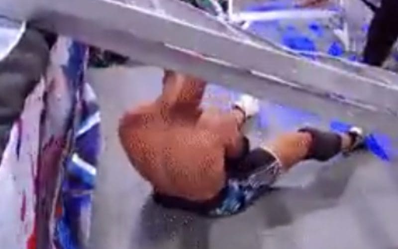 As seen in the match, Waller scaled a giant ladder at ringside and jumped for an elbow drop but instead landed on top of a ladder; entangling his elbow in the process. It appeared to be really painful. He didn’t get back in the match, and his arm didn’t move either. He was also not shown again on camera.