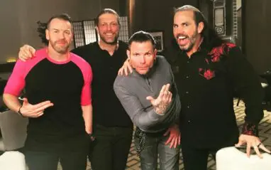 However, it seems like they’ve left those days behind them because The Hardyz are going to appear on Edge and Christian’s podcast. Also, Matt Hardy took to Twitter to post this photo of their reunion with Edge and Christian: