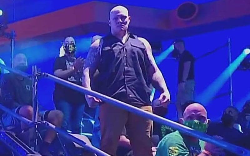 Following Joe Gacy’s win this week on NXT, he was leaving the NXT arena before he stopped for a second and looked up at a massive man standing in the the crowd.