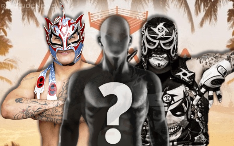 Of course, that match was originally Pac, Pentagon Jr, and Fenix vs The Elite, but Pac was removed from the match. Then a mystery silhouette was put in his place until The Laredo Kid was named in the role.
