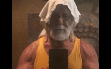 The Hulkster tweeted out a photo of himself in the gym. He looked very hulked up with a towel over his head. Now he’s back to training way ahead of doctor’s suggestions hoping to be ready by Mania.