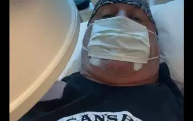 The Hulkster uploaded a video of himself wearing a mask while laying down. He said “once again I find myself on the table.” We’re not certain what kind of table he is on, but it is in a medical setting.