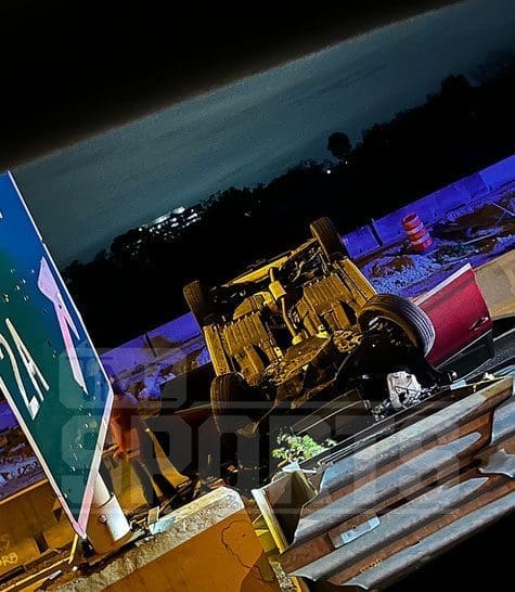 “We’re told a car erratically swerved across the lanes to catch an exit it was about to miss — and in the process ..”. clipped another car, which our sources say flipped over and tumbled.”