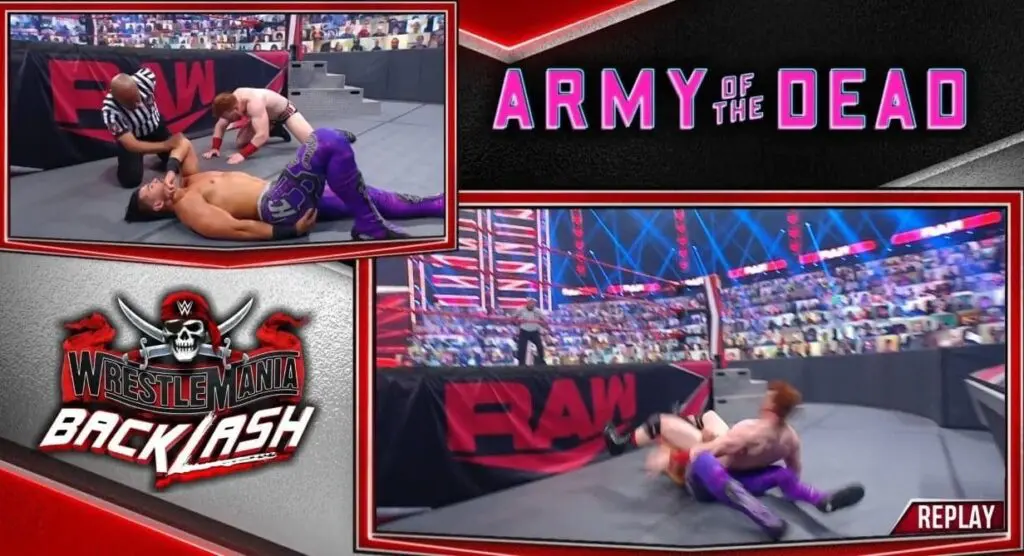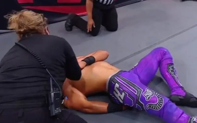 During this week’s episode of Raw, Sheamus defended the United States Title against Humberto Carrillo. This match ended early after a sunset flip bomb to the outside resulted in Sheamus landing on Humberto’s body. They did not get enough rotation and it resulted in Sheamus falling hard directly on top of Humberto.