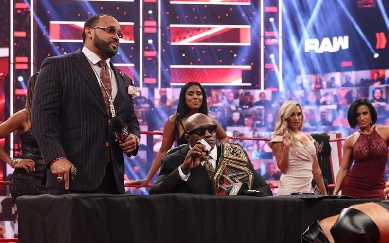 Bobby Lashley’s gimmick has changed a bit since retaining the WWE Title at WrestleMania. It is now common to see him surrounded by plenty of beautiful women. “Lashley’s Ladies” usually change out each week, and this week also featured an indie wrestler.