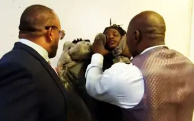 The mysterious figure was confronted by The Hurt Syndicate’s Shelton Benjamin, who slammed him against the wall, mistaking him for Strickland. But things took a wild turn when MVP struck the man with his cane, and Benjamin followed up with a knee to the midsection—only to realize they had the wrong guy!