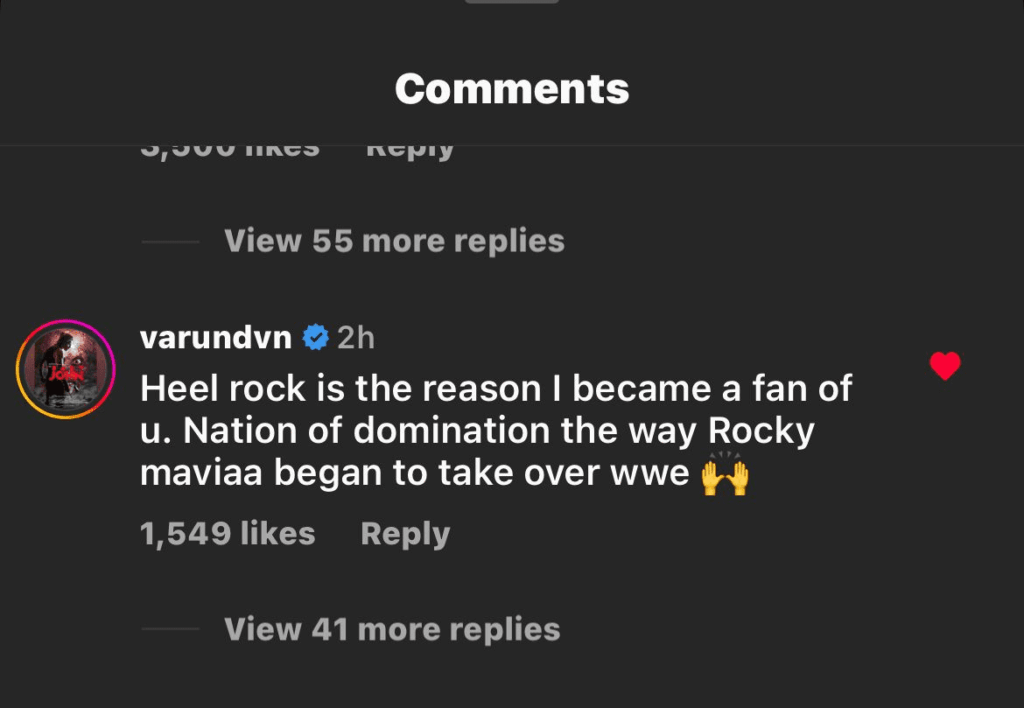 "Heel rock is the reason I became a fan of u. Nation of domination the way Rocky maviaa began to take over wwe."