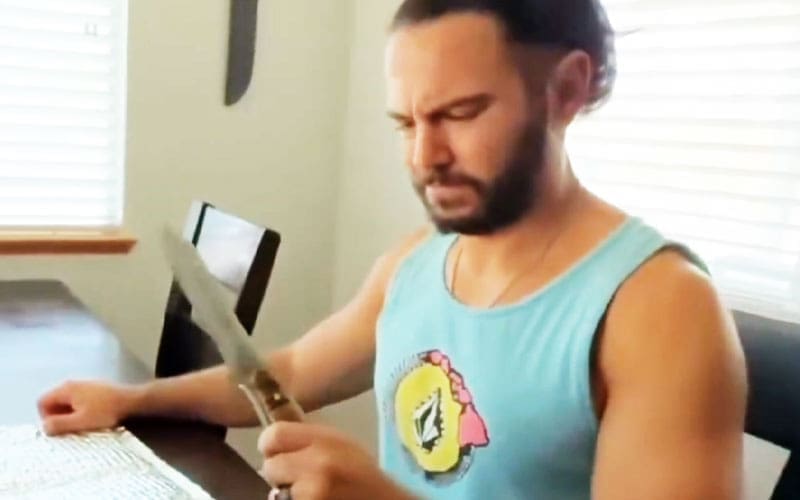 In the latest episode of Being the Elite, Matt Jackson receives a suspicious package in the mail. Inside? A large knife and a handwritten note that reads: “For the next time you want to stab me in the back.”