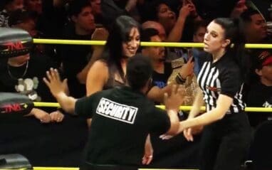 The attack sent the crowd into a frenzy as security rushed in to separate the chaos. Just when it seemed like things were about to explode, Santino Marella made a surprise appearance to a thunderous ovation. With the fans chanting his name, the TNA authority figure wasted no time restoring order—officially booking Slamovich vs. Jayne for next week, with Blanchard banned from ringside.