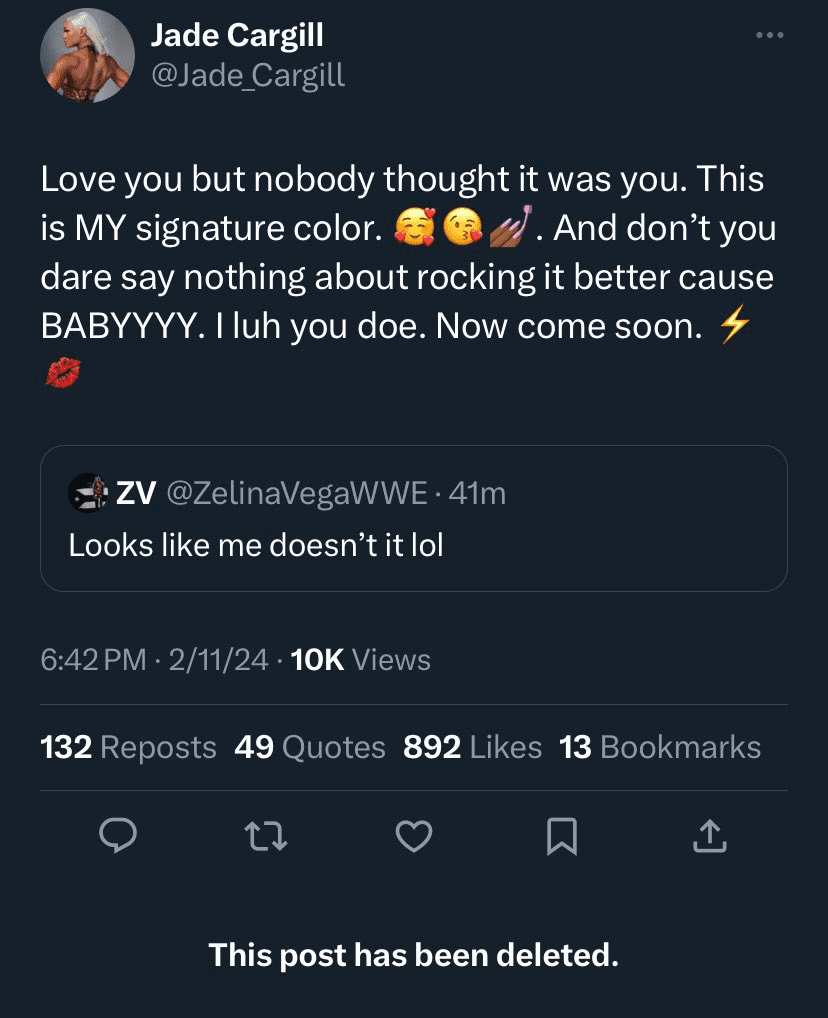 Jade Cargill, whose recent performance at the Royal Rumble Premium Live Event garnered significant attention, found herself in the spotlight once again due to a deleted tweet that fueled rumors of tension with Zelina Vega.
