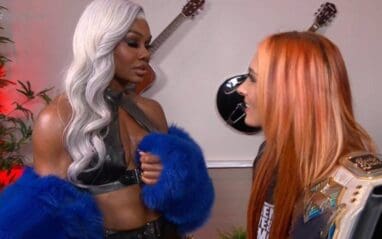 After a little back-and-forth, Jade Cargill was left alone with Adam Pearce. Becky Lynch left, but Pearce commented on Cargill’s blue coat while saying that they need to get her a red one.