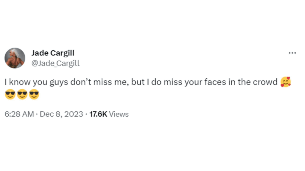 While her in-ring debut remains delayed, Jade Cargill took to Twitter and admitted that she longs for fan interaction in a now-deleted tweet.