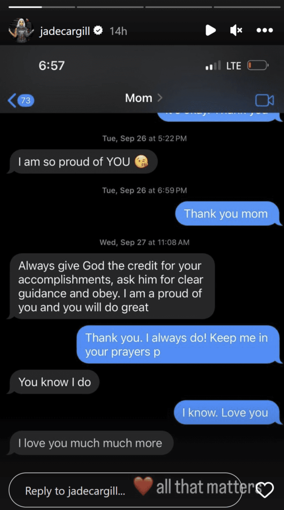 Jade Cargill’s mother had a ton of reasons to be proud of her. She has a ton of potential, but she will always thank God first, thanks to her mother’s guidance.