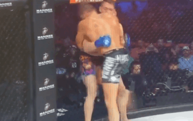 This was not a decision that was received very well at all. The referee called the fight at 1:56 into the fight. Garrett was not able to continue after taking so many knee strikes.