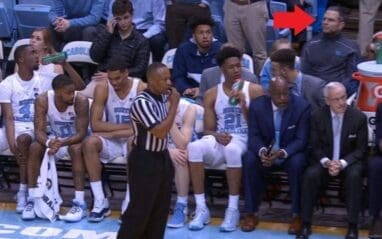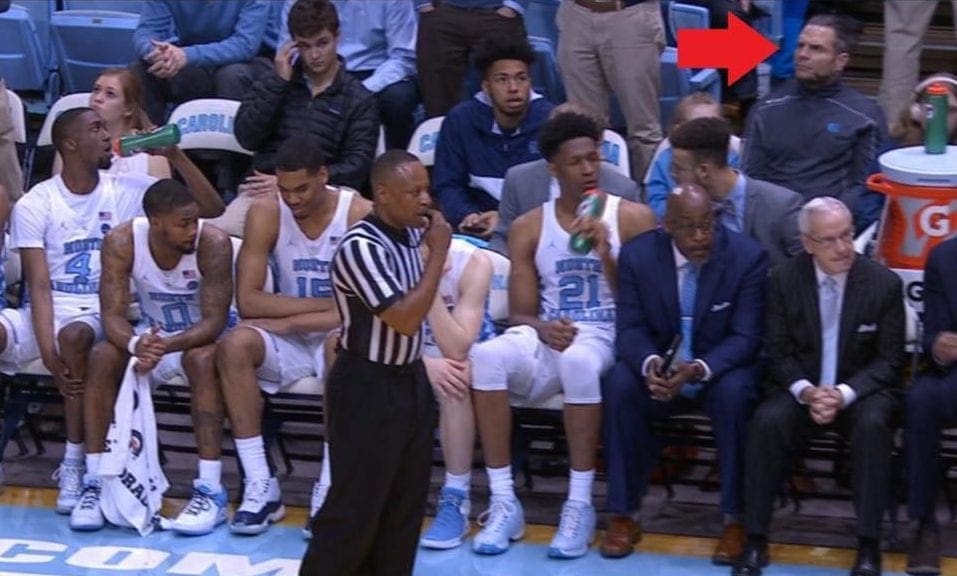 Jeff Hardy was spotted behind the bench at Monday night’s college basketball game between Notre Dame and UNC. Below you can see Hardy sitting behind Coach Roy Williams:
