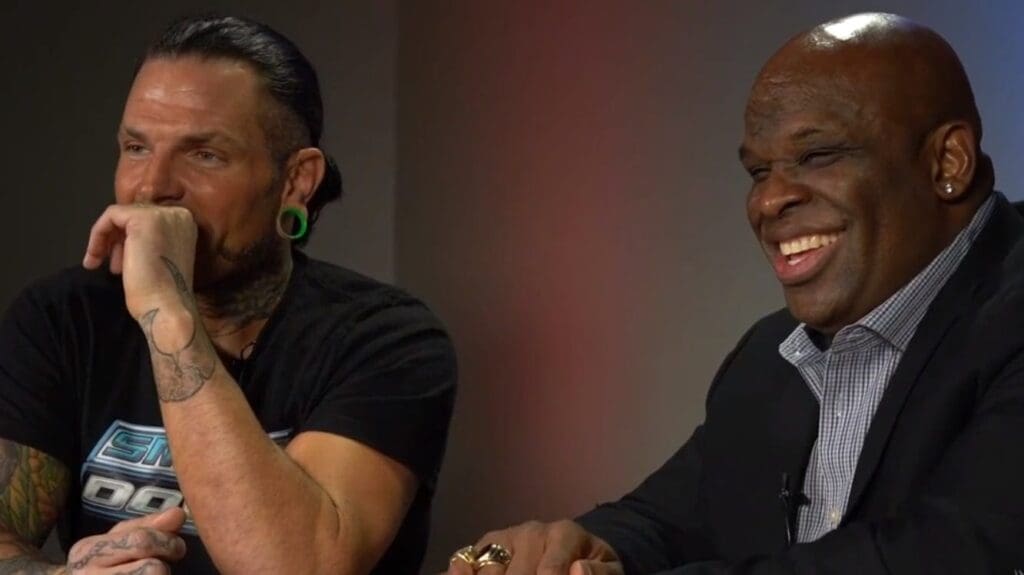 At this time, D-Von has a backstage role with WWE and of course, Jeff Hardy is still wrestling on SmackDown Live. Dudley made a comment about how Hardy is still wrestling while laughing about how much it hurts to take part in a match like that in the ring, but they had a lot of fun doing it.