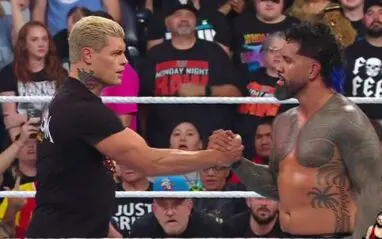 As seen on this week’s episode of Monday Night RAW, it was officially announced that Cody Rhodes will team up with Jey Uso and challenge Finn Balor & Damian Priest for the Undisputed WWE Tag Team Titles at the WWE Fastlane Premium Live Event.