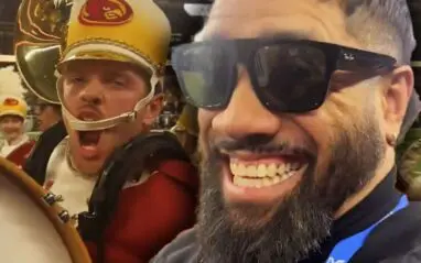 Sami Zayn shared a priceless Twitter video capturing the moment the Arizona State marching band passed by. Things got wild when one of the drummers turned straight to the camera and shouted a booming “WOOOOO!” The camera then panned to Jey Uso, whose initial look of shock quickly turned into a hearty laugh. Jey’s reaction said it all: “God damn, send me that sh*t. Send me that dawg.”