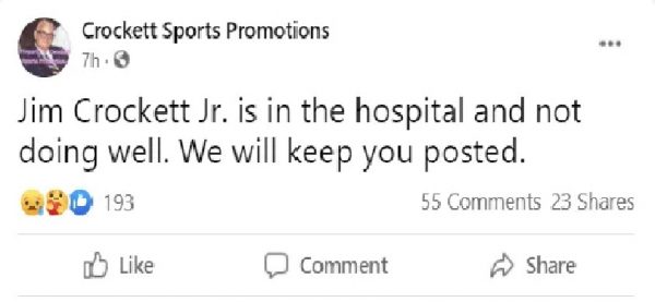 The Crockett Sports Promotions Facebook page posted a rather concerning message on Friday night. It was very short and did not supply a ton of details, but we do know what Jim Crockett Jr. could use our thoughts and best wishes.