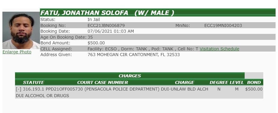 Uso was also arrested in Pensacola back in July 2019 for DUI. This is terrible timing for Jimmy Uso as he just returned to WWE television and was getting quite a nice run with his cousin Roman Reigns. We will have to see how WWE handles this situation.