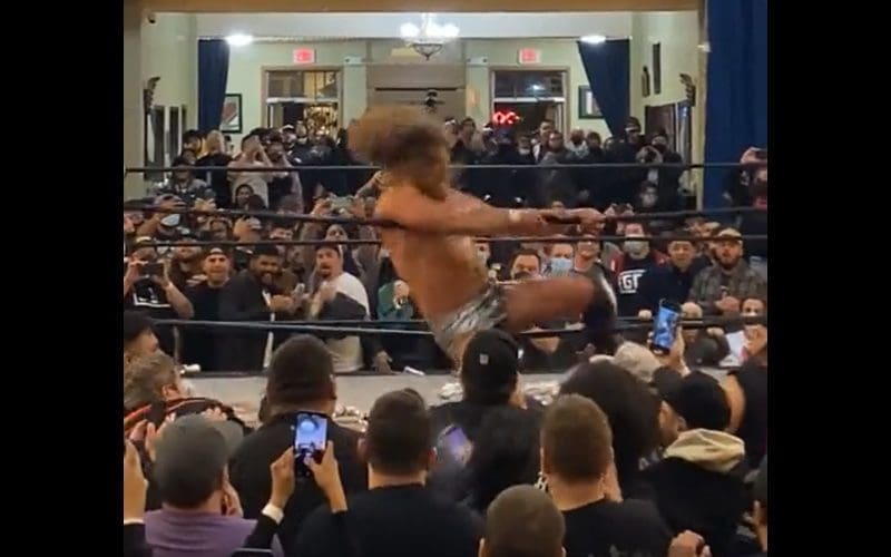 Janela surprised the GCW audience by giving X-Pac a powerful superkick to the face as he was thanking the fans and teasing it as his possible final match. Fans became so enraged that they started tossing their drinks and trash into the ring. As you can see in the video below, Janela is smacked in the face with a drink at the start of the episode, and he loses his cool.
