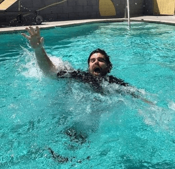 There are photos going around Twitter of Ryan pretending to be drowning while a cat looks on. Apparently, the cat was staring and not caring at all.
