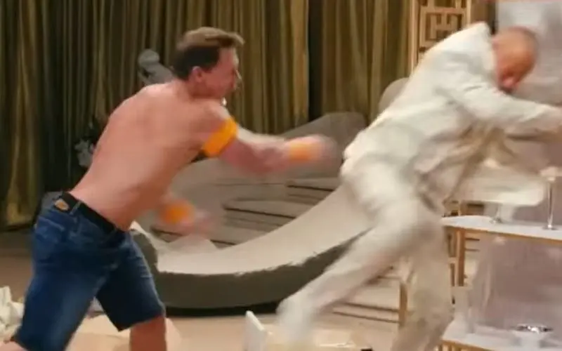 Andre revealed on Jimmy Kimmel Live that Cena launched him on set, but some metal shelves fell and knocked him in the head. It wasn’t Cena’s fault, but rather the crew who was responsible for setting up the scene.