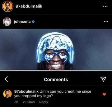 Abdulmalik, the artist responsible for the image, commented on John Cena’s Instagram post and called out the 16x Champion for using his photo without crediting him. The post received a few likes, enough for Cena to notice.