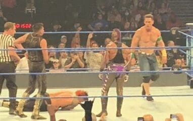 After SmackDown was over, John Cena teamed up with Rey and Dominik Mysterio to take on The Usos and Roman Reigns. This was quite a treat for the Cleveland show after SmackDown went off the air.