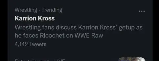 Twitter featured the “Karrion Kross” trend on their sidebar with the following description: “Wrestling fans discuss Karrion Kross’ getup as he faces Ricochet on WWE Raw.” They were doing a lot more than just discussing it.