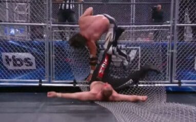 During the match, one of the biggest spots in the match saw Kenny Omega hitting the V-Trigger on Jon Moxley, which saw them crashing through the steel cage. It turned out to be a botched spot as Omega narrowly avoided serious injury on the ropes.