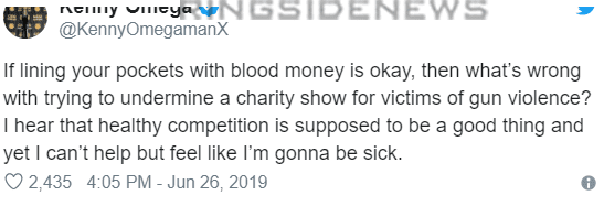 Fight For The Fallen is also a charity show to benefit the survivors of gun violence. This was enough to make a usually calm and collected Kenny Omega speak up and he went all out in his response.