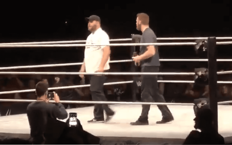 Kevin Owens and Sami Zayn might be fired but that won’t stop them from following the SmackDown Live brand like a couple of hardcore fans. But unlike any fan, when they jump in the ring security isn’t there to stop them right away. When they showed up to the Huntington WV house show on Saturday night it caused quite a stir.