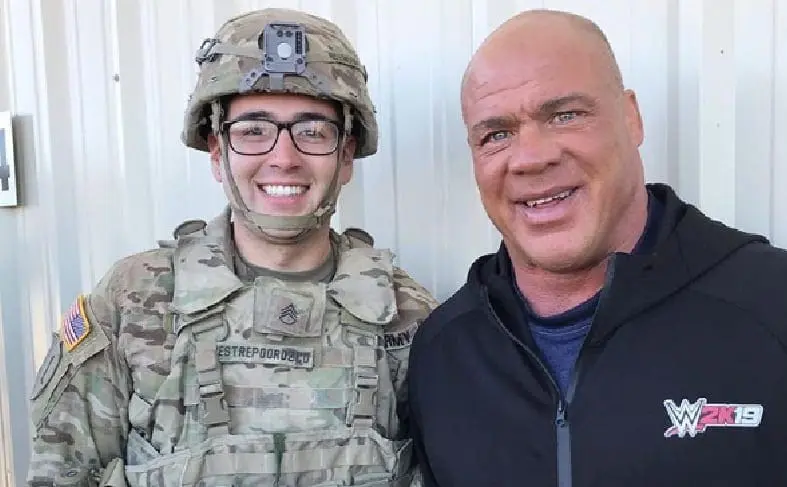 WWE is airing the 16th annual Tribute To The Troops special on December 20th at 8:00 pm on the USA Network. It appears they are getting some filming done today and Kurt Angle was nice enough to give us a little sneak peek on what he is up to.