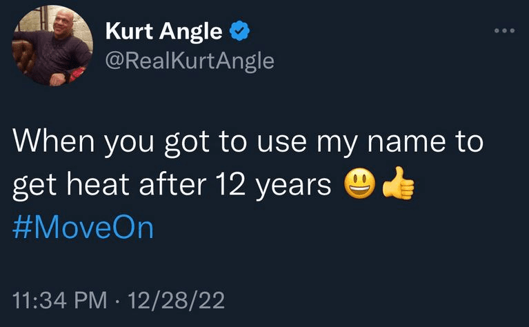 Kurt Angle responded to the line on Twitter following the show, where he mentioned how it’s been 12 years, and people should #MoveOn. He removed the tweet shortly after it was posted. As of this writing, Caster had not responded to Angle’s deleted tweet.