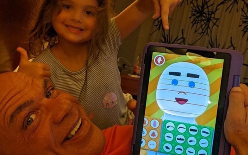 Kurt Angle recently posted a photo on Instagram with his daughter, who drew a picture of him on her tablet. He further elaborated that his kids continuously bug him for growing back his hair, and Angle explained that he would grow it back if he could.